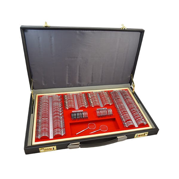 Este juego de lentes de prueba proporciona el complemento completo de 268 lentes empaquetados en un atractivo maletín con cerradura. Tamaño de lente estándar de 38 mm.